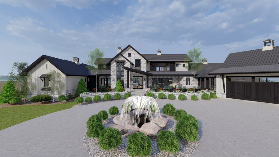 Country living meets contemporary styling! This farmhouse-inspired 4-bedroom ranch home, which features a separate barn and a pool and hot tub retreat, was designed to be a refuge from urban hustle and bustle.